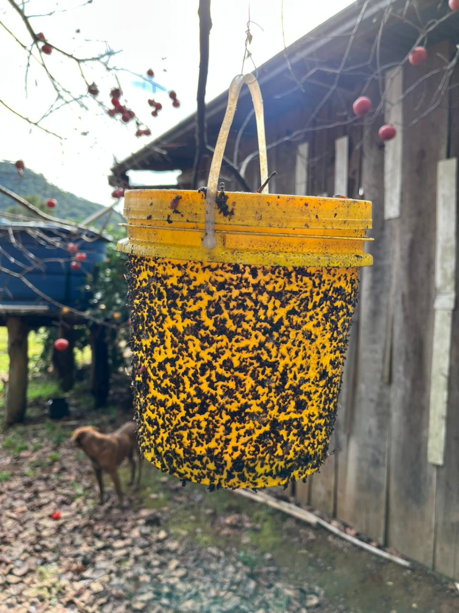 7. Não é necessário agitar /misturar o atrativo periodicamente pois o balanço da armadilha pela ação do vento o mantém homogêneo.